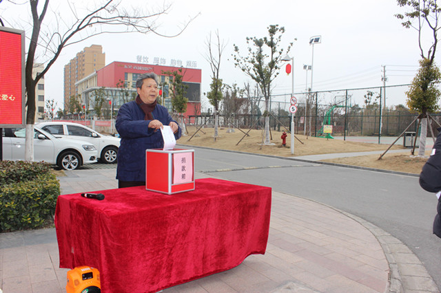 圖為園區(qū)城管局副局長楊同異捐款