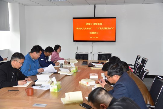 4月13日下午,建發(fā)公司黨支部召開黨史學(xué)習(xí)教育集中學(xué)習(xí)會(huì),并開展“換屆風(fēng)氣大家談”、“百名黨員憶初心”主題黨日活動(dòng)。公司全體黨員、發(fā)展對(duì)象和入黨積極分子參加活動(dòng)。