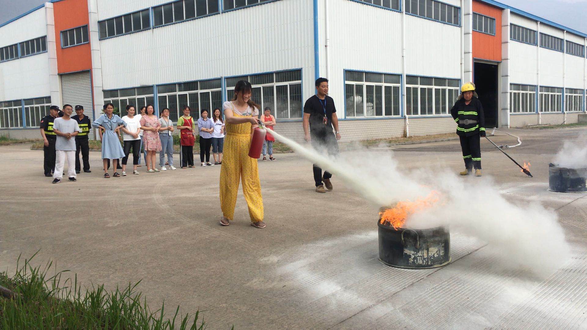 公司安防主管對消防知識和滅火器的使用進行了詳細講解,并對消防器材與設施的使用方法和日常維護方式等進行實踐操作,現場員工紛紛上前進行操作。