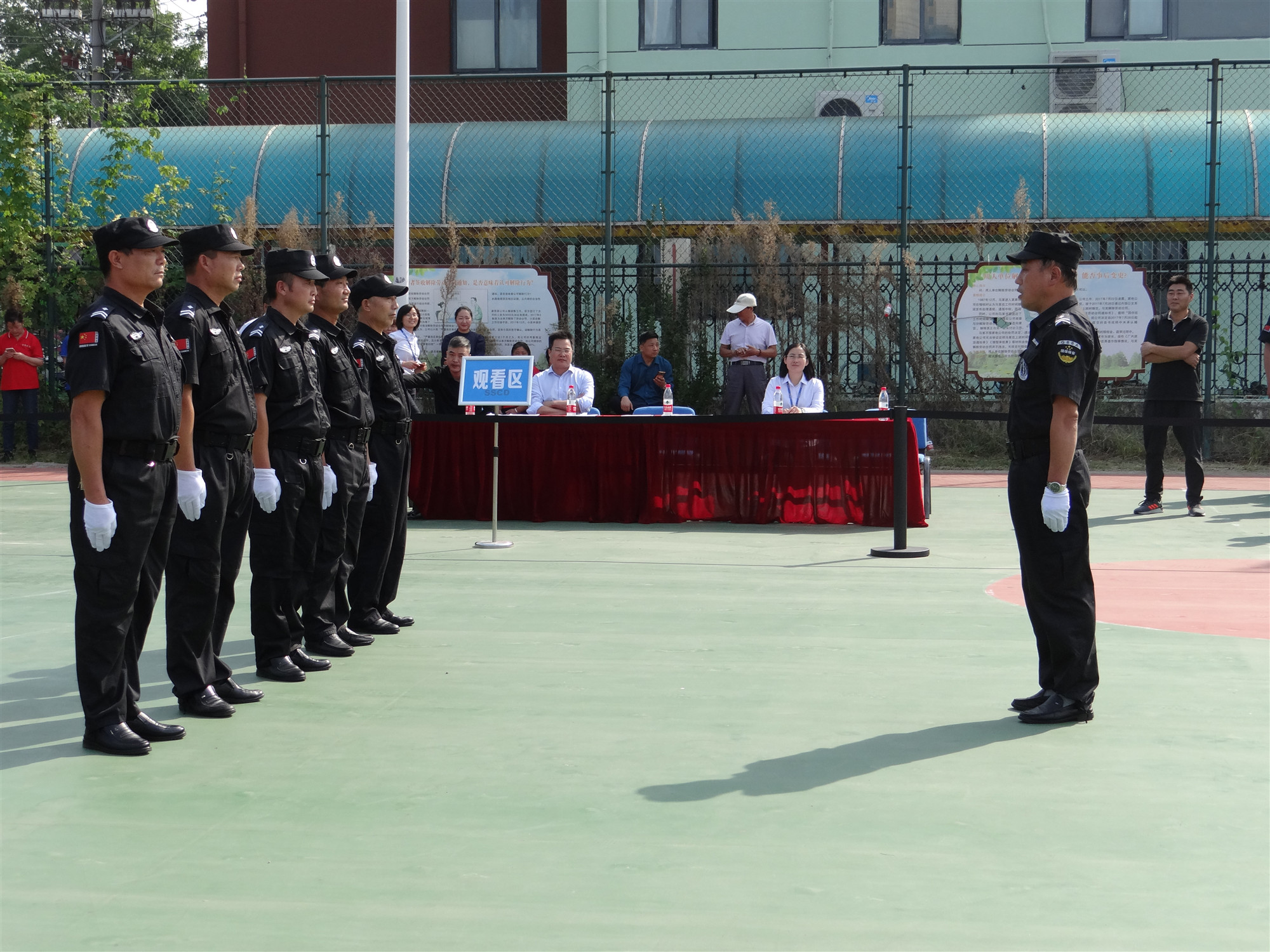 本次安保大比武活動(dòng)共有3家參賽隊(duì)伍,分別是蘇宿工業(yè)坊項(xiàng)目單位江蘇國保、園區(qū)公舍項(xiàng)目單位江蘇天翔、外國語學(xué)校項(xiàng)目單位蘇州君鼎代表隊(duì),共計(jì)60余人,各支隊(duì)伍紛紛選派精兵參加比拼。參賽隊(duì)伍一一進(jìn)行隊(duì)列展示,評(píng)委進(jìn)行統(tǒng)一打分,3支參賽隊(duì)伍完成會(huì)操比賽后,又進(jìn)行了消防業(yè)務(wù)、體能等項(xiàng)目,現(xiàn)場(chǎng)你追我趕,體現(xiàn)了團(tuán)隊(duì)風(fēng)采。