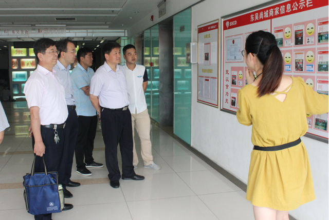 于堅(jiān)強(qiáng)一行先后參觀了東吳尚城美食城和園區(qū)公舍餐廳,聽取了園區(qū)小餐飲集中區(qū)建設(shè)背景和運(yùn)營狀況的介紹,并先后觀看了園區(qū)運(yùn)用移動(dòng)終端、二維碼等技術(shù)手段推動(dòng)明廚亮灶、遠(yuǎn)程監(jiān)管、社會(huì)共治的現(xiàn)場演示。考察中,于處長對(duì)園區(qū)積極創(chuàng)新監(jiān)管手段,推動(dòng)社會(huì)共治,將小餐飲管理出高標(biāo)準(zhǔn)給予了充分肯定,他要求建發(fā)公司要進(jìn)一步創(chuàng)新監(jiān)管思路,加大食品管理力度,確保食品衛(wèi)生安全零事故。