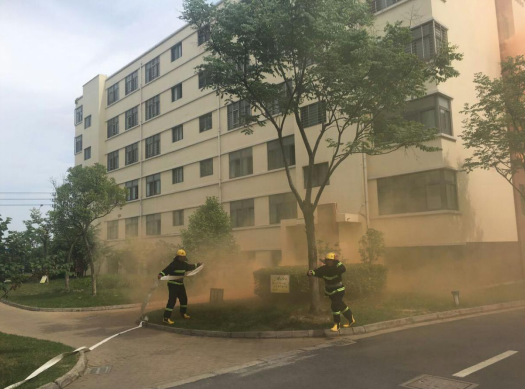 14:20分,園區(qū)公舍2號(hào)宿舍樓冒起滾滾濃煙,隨即刺耳的火災(zāi)警報(bào)聲響徹園區(qū),義務(wù)消防戰(zhàn)斗人員接到指示立即啟動(dòng)消防三輪車奔赴火災(zāi)現(xiàn)場(chǎng)。不到一分鐘時(shí)間,一至六層的租戶在疏散人員的帶領(lǐng)下掩住口鼻,彎著腰,有序地從宿舍的消防安全通道逃生。隨即,消防戰(zhàn)斗人員按照指示迅速開啟消防水泵對(duì)“起火”后的宿舍樓進(jìn)行快速滅火,救護(hù)人員隨即趕到現(xiàn)場(chǎng)參加救護(hù),演練持續(xù)近五分鐘后圓滿完成。