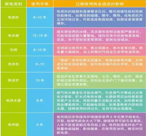 我們平時(shí)在購買食物時(shí)都會特別注意查看食品的保質(zhì)期,但是您知道家用電器也有“保質(zhì)期”嗎?家用電器都有安全使用年限,在使用時(shí)一定要留意。